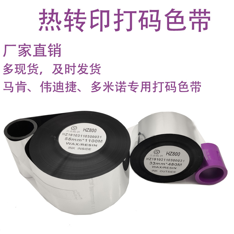 熱打印色帶在食品、飲品、醫藥等行業廣泛應用。產品的外包裝上通過自動或手動熱打碼機打印,能夠方便快速地把字跡打印。具有印字清晰,字跡耐水洗、耐高溫、耐磨擦、美觀**打印墨跡瞬間干固,衛生干凈,***等特點。