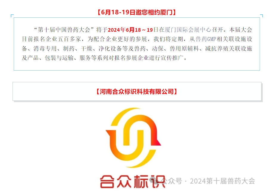 河南合眾標識科技有限公司邀您參加2024第十屆中國獸藥大會